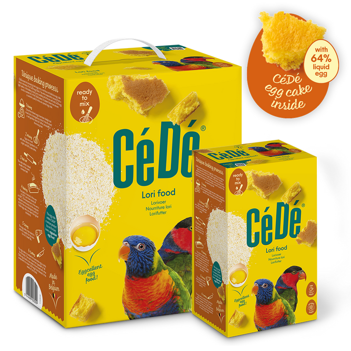 CéDé® Lory Food is complete food for all species of lory birds, hanging and fig parrots. The processing of the full eggs makes CéDé® unique! Egg protein is an easily ingestible and optimally usable source of animal protein for birds. CéDé® Lory Food is an easily digestible food that contains all the necessary nutrients to keep your birds in optimal shape and to obtain breeding results.